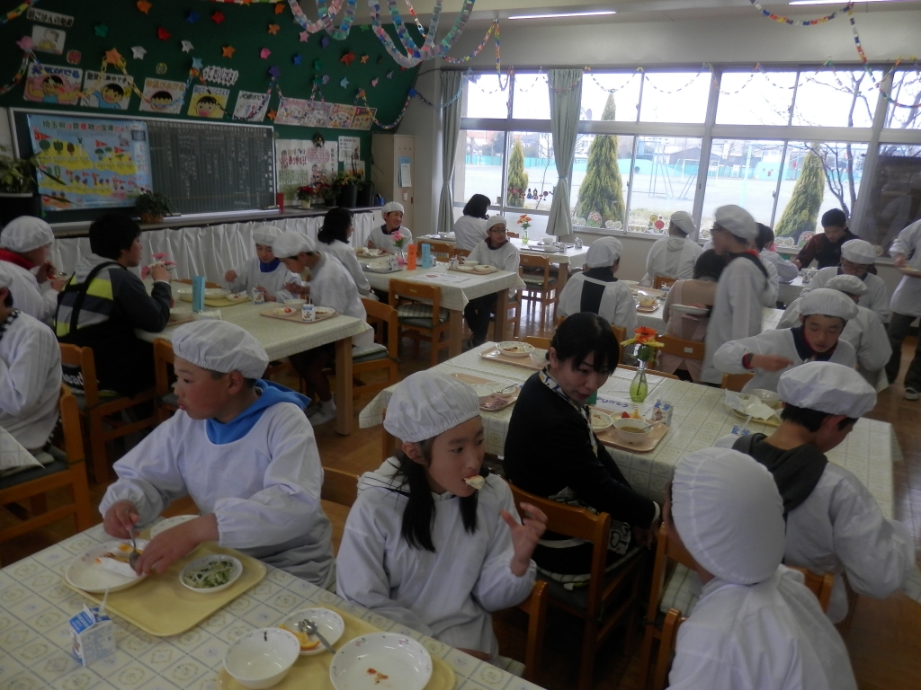 お別れバイキング給食2日目は、6年2組です。和やかな雰囲気のなかお世話になりました。