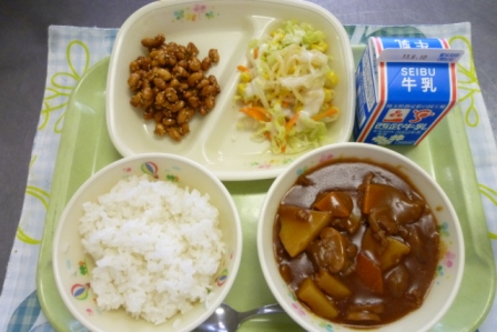 牛乳 ハヤシライス 大豆のしゃりしゃり揚げ