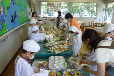 バイキング給食は、子どもたちが食事を楽しみながら「望ましい食習慣」について