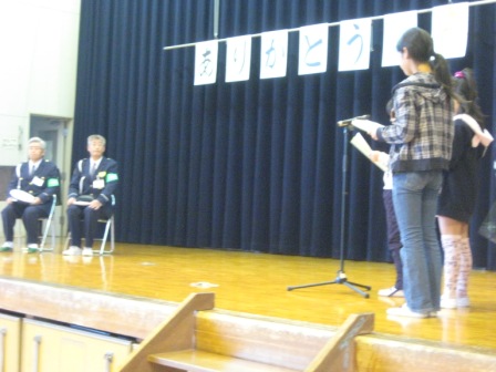 毎朝登校時にお世話になっている交通指導員さんをお招きし、ありがとう集会を行いました。作文発表や指導員さんのお話し、交通安全宣言、交通安全に関わるクイズがあり、感謝の気持ちを伝えるとともに交通安全について振り返る時間となりました。