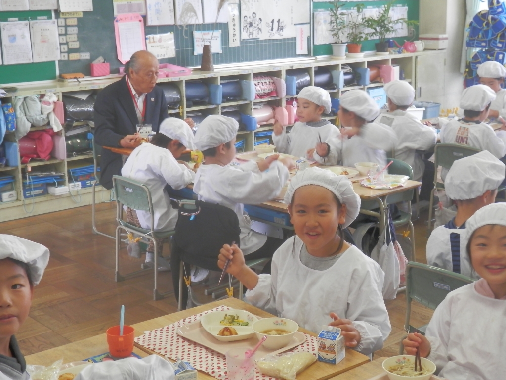 8日(水)は、防犯パトロール感謝の集いが行われました。12名の防犯パトロールをしていただいている方々に来校していただきました。授業参観の後に子供達と一緒に給食を食べていただきました。いつも大変お世話になっております。