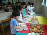 子どもたちからは、「毎日でもいいよ」「ピザを5個食べたよ」「お代わりを何回もしたよ」「とっても楽しかったよ」など笑顔いっぱいに話してくれました。