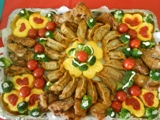 主食(わかめごはんのおにぎり、クリームサンド、手作りピザ)、主食(当日の主菜+2品)、サラダ、汁物、果物(スイカ、パイン、オレンジ、キウイフルーツ)を用意しました。