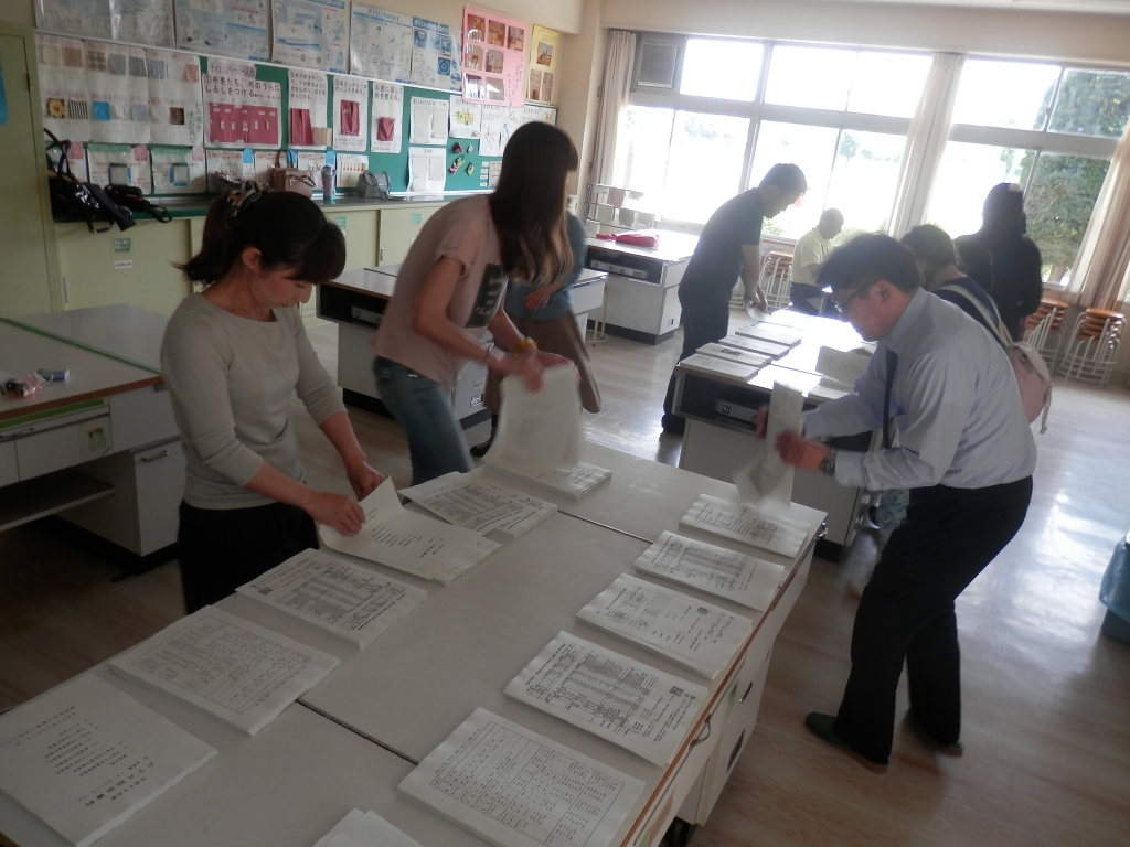 18日(火)の午後2時から家庭科室でPTA総会資料の綴じ込みを行いました。役員の皆様方のおかげて短時間で綴じ込みが終わりました。これで総会を待つのみとなりました。ありがとうございました。