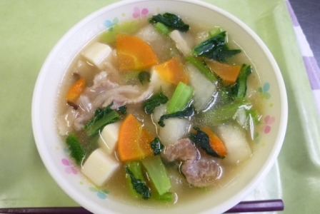 児童の冬瓜のスープの感想です。・・・「体が温まります」 「やさしい味です。」「トロンとしています。」