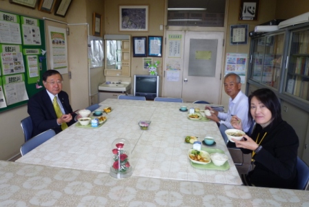 今日は、柴﨑議員様をお迎えして「冬瓜のスープ」を試食していただきました。