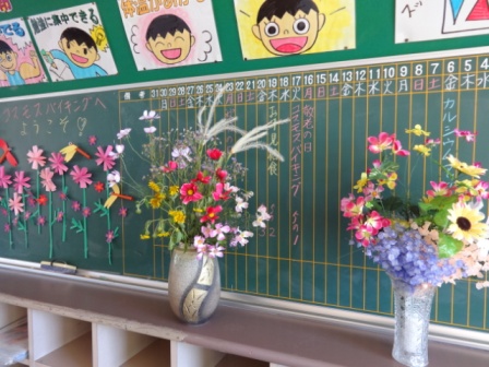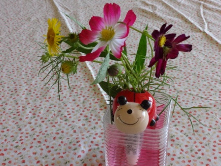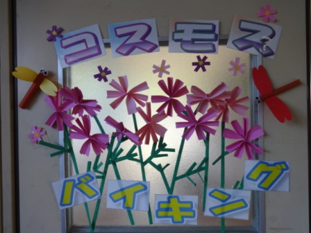 ランチルームは季節の花・コスモスでいっぱいです!