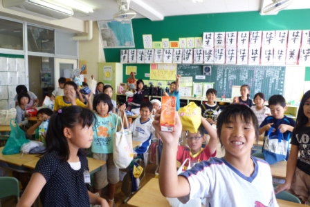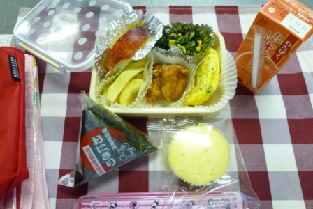 今日は各自用意した空のお弁当箱に、給食のおかずを詰めて