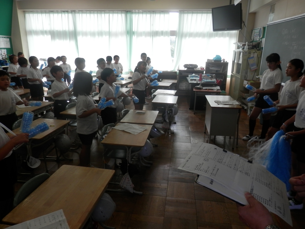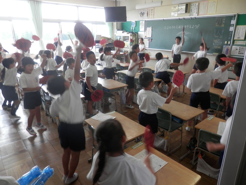 2校時休みに応援練習がありました。今年は、2色の対抗です。赤組、白組と分かれます。それぞれ応援の高学年が中心に各教室練習をしていました。校舎から大きな応援の歌が鳴り響いていました。