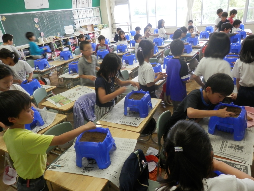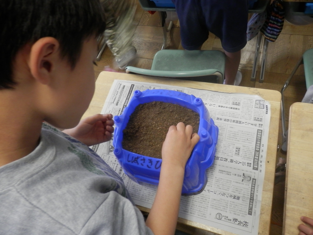 3年生の理科でホウセンカの種をまきました。理科の河田先生の授業で「植物のそだち」を学びました。植木鉢の中に上手にまいていました。子供達は真剣に取り組んでいました。