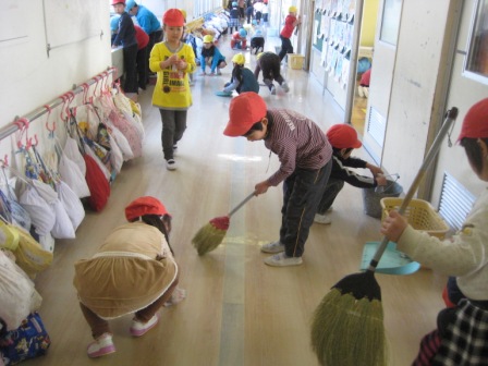 水曜日、木曜日、金曜日は朝の会を終えて清掃の時間になります。1年生も掃除道具の使い方やぞうきんがけのしかた、机の運び方などに慣れて時間内でできるようになっています。