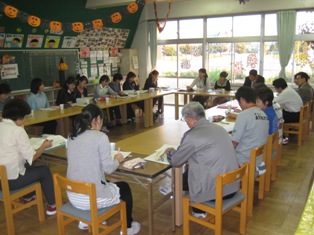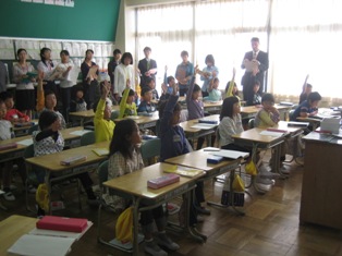 校内で授業研究会を行いました。今回は2年2組で算数の研究授業を行い、放課後に研究協議を行いました。2年生で学習する新しい計算「かけ算」の基本「1つ分の数」×「いくつ分」=「全部の数」という概念をおはじきを使って具体的に操作したり、言葉で表現したりしながら習得させる授業でした。初めて「×」の記号を習い、子ども達の学習感想からは「むずかしいと思っていたけど、簡単だし、早く答えが出せてよかった」と、かけ算のよさに気付いたものが多くありました。