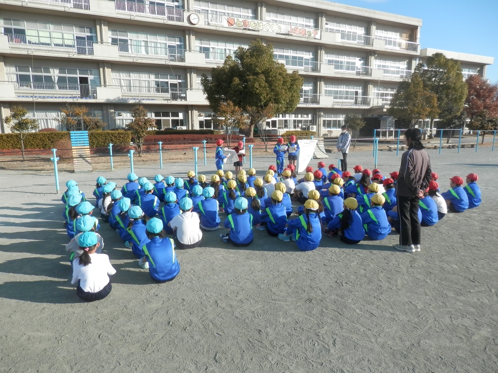 今日は、学年朝会です。生活目標のやくそくや今月の詩、長縄跳びなど各学年の取組をしていました。学校生活をよりよくするために学年ごとに話合い工夫していくことが大切だと思いました。