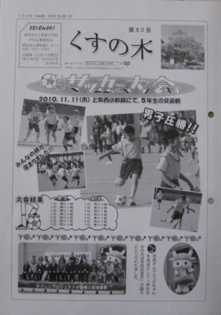 広報委員会の活動によるPTA広報「くすの木」80号が発行されました。2学期の行事の様子やおこづかいアンケート、PTA活動など充実した内容です。なお、「くすの木」が平成22年度大里地区PTA広報紙コンクールにおいて金賞を受賞しました。(お詫びと訂正、広報誌8ページのお知らせ欄の名前が間違っていました。誤「石川薫」→正「石井薫」。)