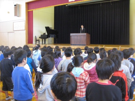 2学期の終業式を行いました。今学期は、各学年とも毎日の授業や一つ一つの行事に計画的に、そして協力して取り組み、目に見える成果をあげることができました。多くの方々に支えられて安全に過ごすことができました。ありがとうございました。なお、終業式の前に、親善運動会での新記録賞の表彰を行いました。