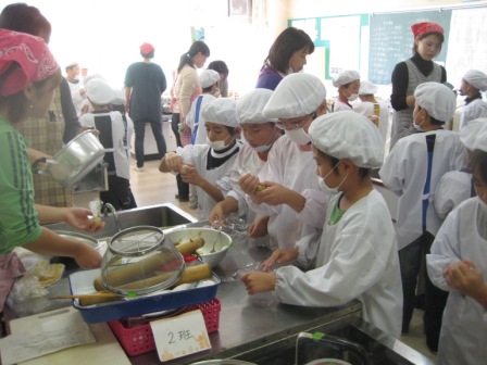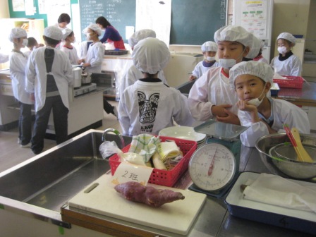 3年生が総合的な学習の時間で取り組んでいる「サツマイモと仲良し」も終盤に入りました。クラスごとにサツマイモを使った調理をします。保護者の方々に支援をしていただき、ちゃきんしぼりと蒸しパンがおいしくできました。
