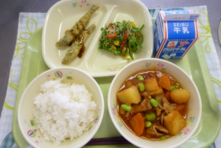 牛乳 ご飯 小イワシ じゃこピーマン イタリアン肉ジャガ