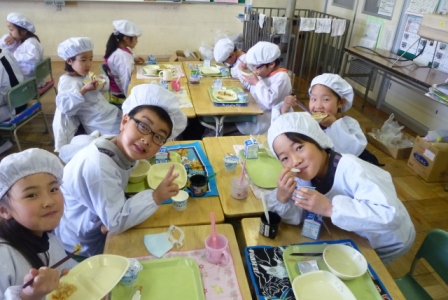 給食時間に校内放送を活用して、毎回、食育指導を行っています。