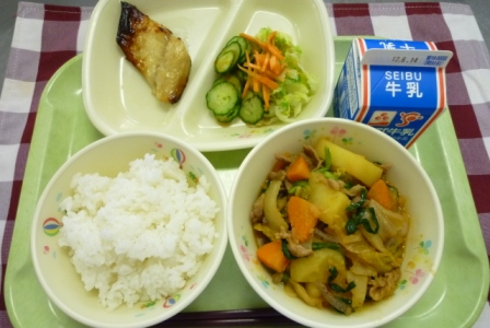 牛乳 ご飯 さばの西京焼き きゅうりとキャベツのドレッシング