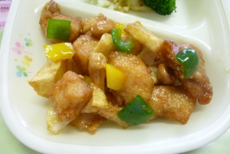 人気の鶏肉とカシューナッツの炒め物は、学校中でも大人気!