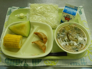 しょうゆラーメン 牛乳 揚げ餃子 とうもろこし メロン チーズ