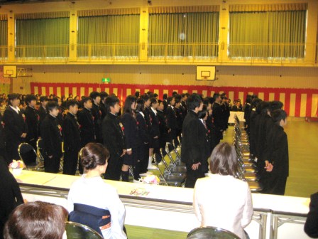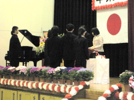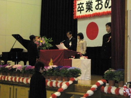 式の中で卒業生は終始腰骨を立てて立派な態度でした。式辞の中での「腰骨を立てる子」の暗唱は力強く、「卒業生のことば」は心をこめたものでした。在校生も卒業生から学校の伝統を受け継ぐ代表としてしっかりとした態度で「送ることば」を呼びかけました。87名の卒業生の前途を祝します。