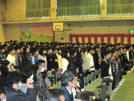 87名の卒業生が巣立ちました。余震を感じる中においても、無事に卒業証書授与式を行うことができたことに感謝し、この度の大震災にて被災された皆様に心よりお見舞い申し上げます。
