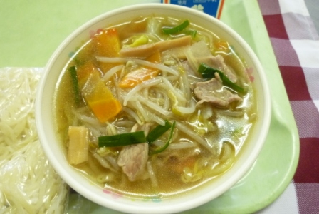 もやしをメインに油で炒め、あんかけをつくり最後にスープに