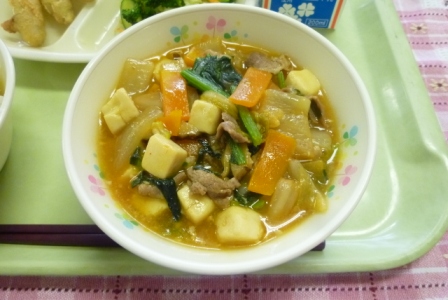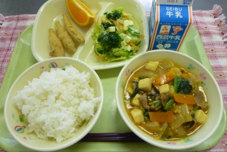 牛乳 ご飯 わかさぎの天ぷら 韓国風肉豆腐