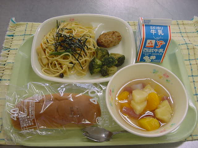 牛乳 黒パン 白ゴマつくね ブロッコリーのピリッと漬け