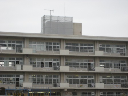 市教委による地デジアンテナ工事が行われています。各教室の42インチモニターの活用方法が広がります。