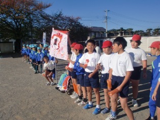 学級活動で作成した応援旗を精一杯にふり、クラスの枠を超え、団結して応援していました。