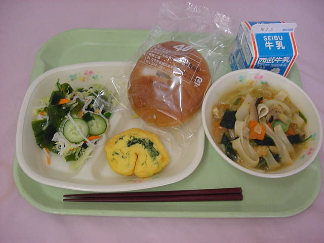 牛乳 さきたまライスボール ほうれん草の卵焼き