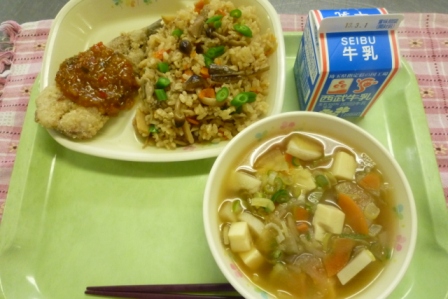 牛乳 舞茸ご飯 いわしの中華ソースかけ けんちん汁