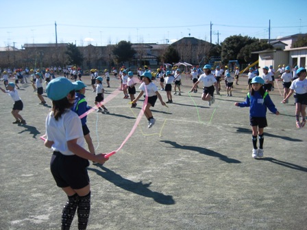 今日は、短なわとびでいろいろな跳び方を練習しました。