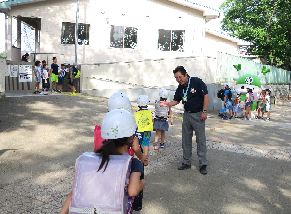 児童一人一人に声がけとハイタッチをし、「サッカー見たかい?」「決勝進出 おめでとう!」という元気なあいさつに、子供達はとてもうれしそうでした。市長さんからエネルギーをいただきました。