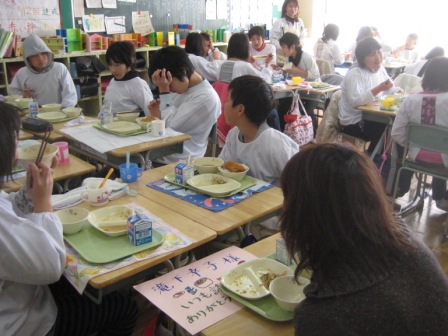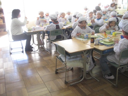 毎週月曜日に活動していただいている、読み聞かせグループ「ドリーム」の方々と図書ボランティアの方々を招いて、感謝の集いを行いました。給食の時間に各クラスに入っていただき、子ども達と楽しく会食しました。これからも、よろしくお願いいたします。