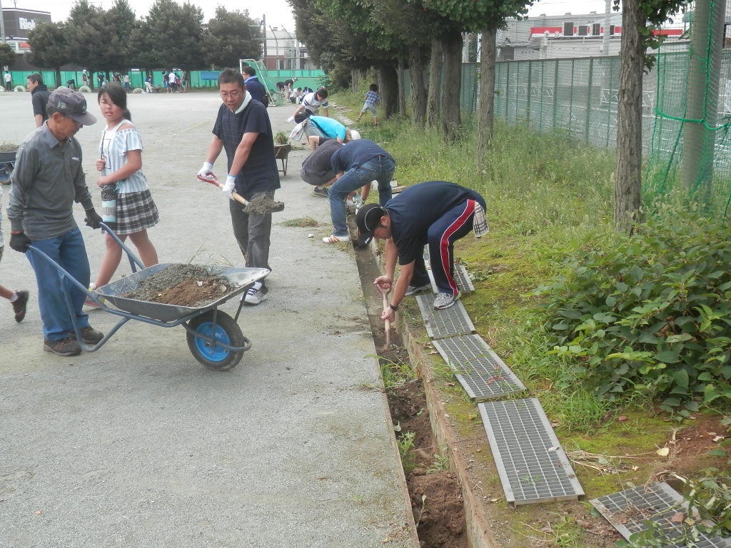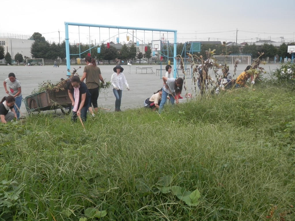 26日(土)は、PTA奉仕作業でした。朝7時に集合して校地内の除草、側溝の掃除、校舎内の掃除などをしました。たくさんの保護者のご協力で見違えるほどきれいになりました。2学期をきれいな環境で子供たちを迎えることができます。ありがとうございました。