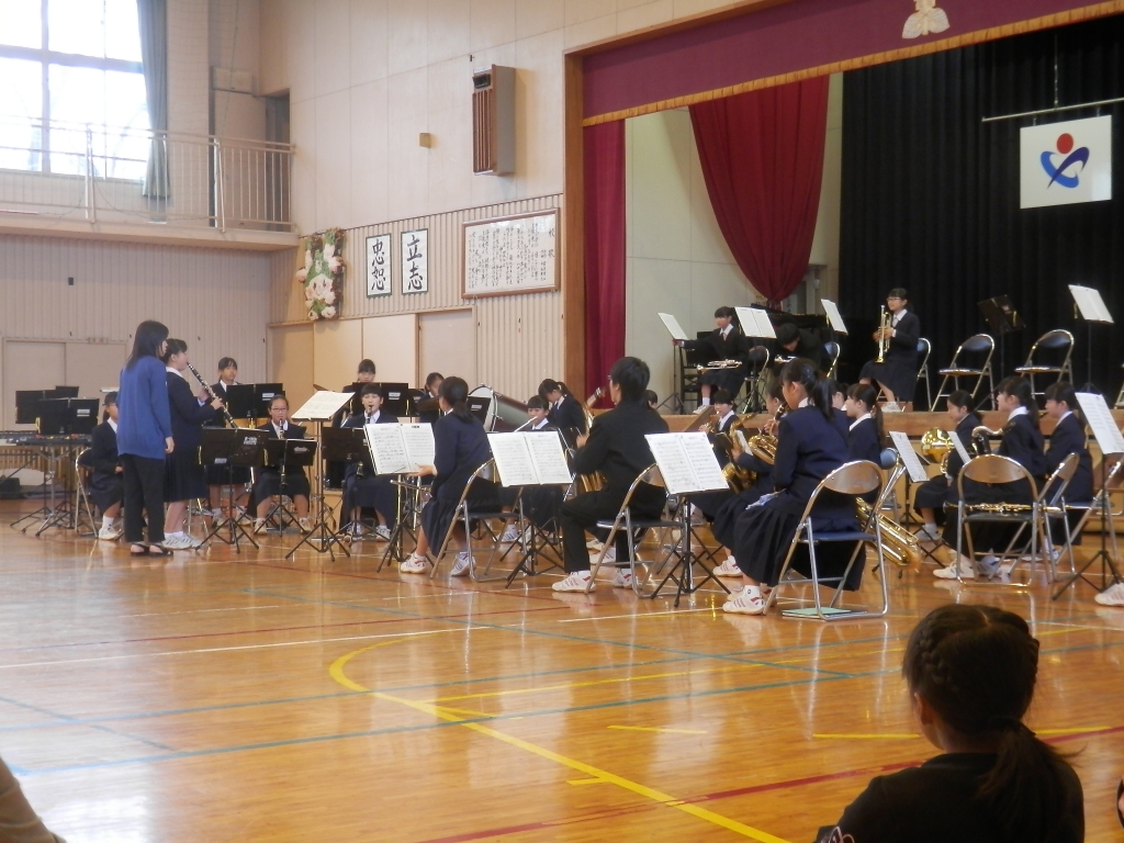 上柴中学校の音楽部、吹奏楽部の皆さんにきていただきました。