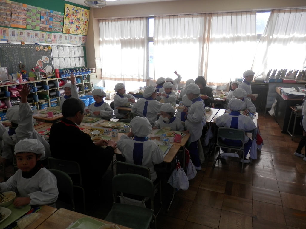 25日(水)は、学校応援団感謝のつどいが行われました。上柴公民館長様、民生児童委員の皆様、読み聞かせドリームの皆様、ふかや緑の王国の皆様、書きぞめ支援の皆様、グリーンプロジェクトの皆様に来校していただきました。給食を子供たちと食べていただき交流をしました。いつも、子供たちのためにありがとうございます。