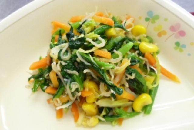 カルシウムの豊富なチリメンジャコと一緒に甘辛く炒めました。