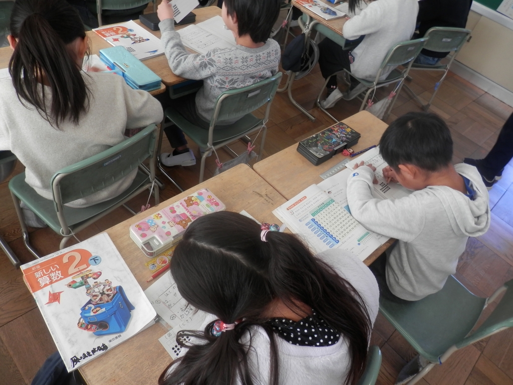 校内授業研究会で2年1組の井上教諭が算数の授業をしました。単元名は「かけ算」で乗法九九を総合的に活用し問題を解決します。子供達は、様々な考え方で問題を解いていました。がんばりました。