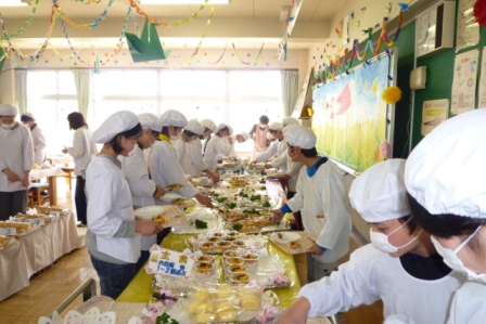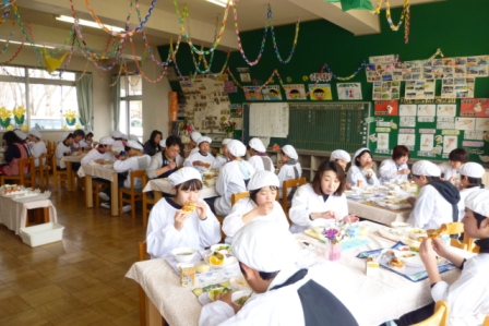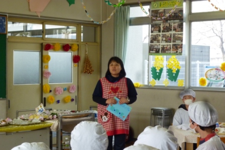 招待された先生方や調理員さんは、もうすぐ卒業する6年生に『お祝いの言葉』を贈りました。