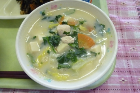牛乳を加えてつくる「飛鳥汁」をカルシウムアップメニューとして
