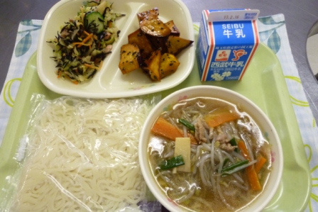 牛乳 サンマーメン 大学いも ツナとひじきのサラダ