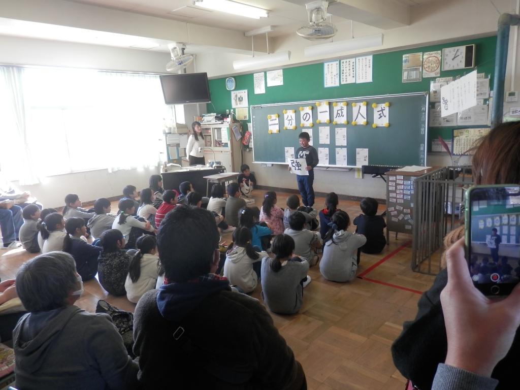 15日(水)の5校時に授業参観が行われました。子供達は、集中して取り組んでいました。4年生は、1/2成人式、5年生は、保健学習、6年生は、感謝の会でした。今年度最後の授業参観です。ご支援・ご協力ありがとうございました。
