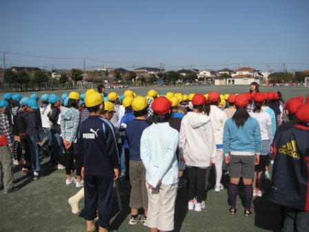 新しい学年での初めての学年朝会が行われました。先生の話をしっかり聞く子ども達は、目もきらきらしていました。