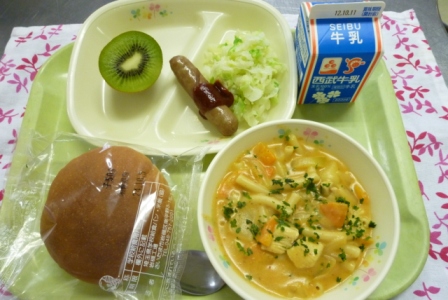 牛乳 子どもパン 焼きウィンナー 茹でキャベツ