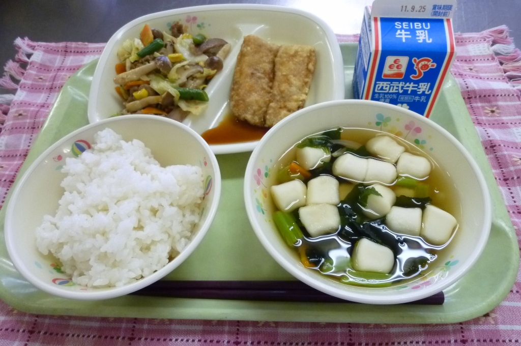 今日の給食は、秋の味覚・サンマのかば焼きです。