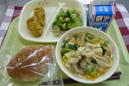 牛乳 バターロール 竹輪のカレー揚げ 煮ぼうとう
